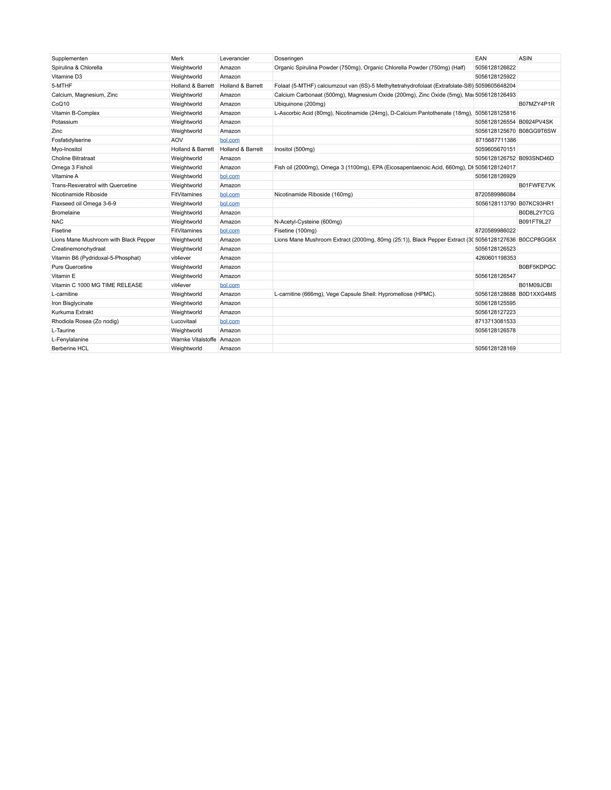 Disclaimer: Nothing in this list is Medical advice in any way. I don't claim any of these supplements have any effect. It may be dangerous without consulting a pharmacologist or specialist.